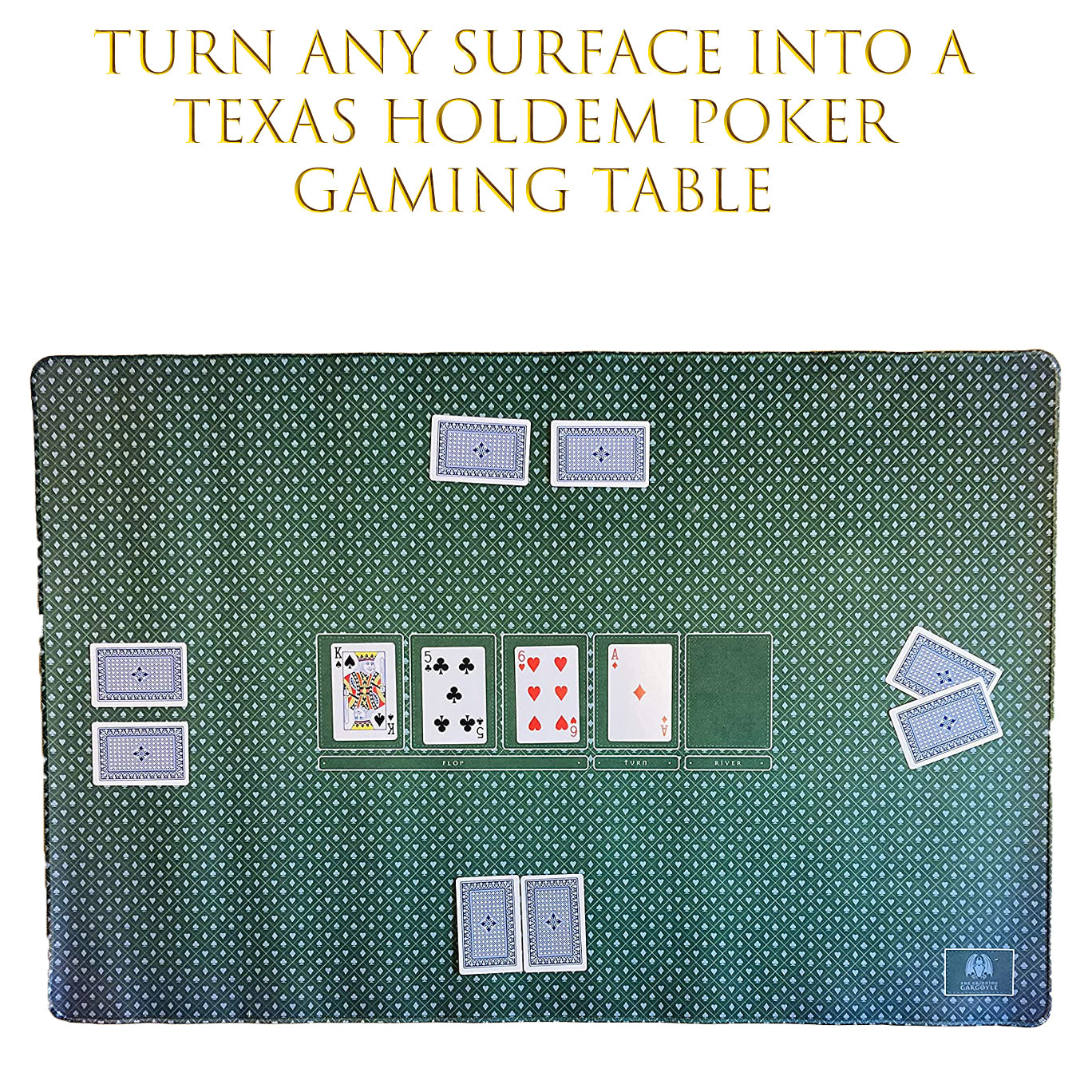 - TURN ANY SURFACE INTO A TEXAS HOLDEN POKER GAMING TABLE - Our playmat is a premium Las Vegas style playing surface designed to protect your chips and cards from unclean surfaces.