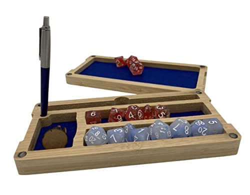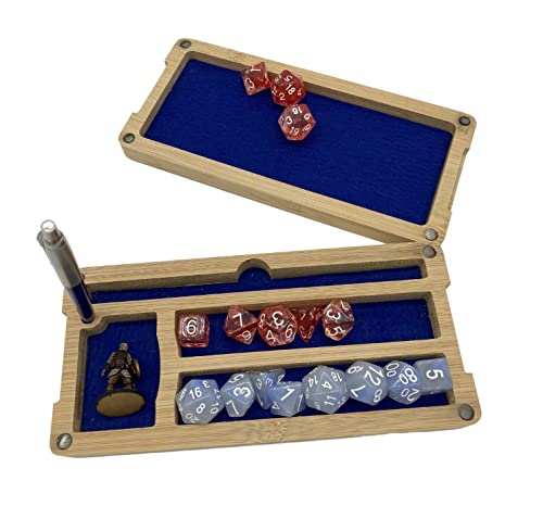 - āļøš² COMBAT-READY COMPARTMENTS ā The top of the case acts as a dice rolling tray while the body includes space for a single miniature, a pencil and two sets of polyhedral die. This bamboo rpg pouch measures 22cm x 10cm x 3.5cm, just keep it in your bag with your Players Handbook.